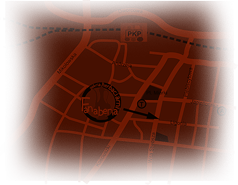 Fanaberia "tea garden" znajduje się w Katowicach. Mieści się na skrzyżowaniu ulic Wita Stwosza i Juliusza Ligonia, w połowie drogi między pl.Miarki, a katedrą.